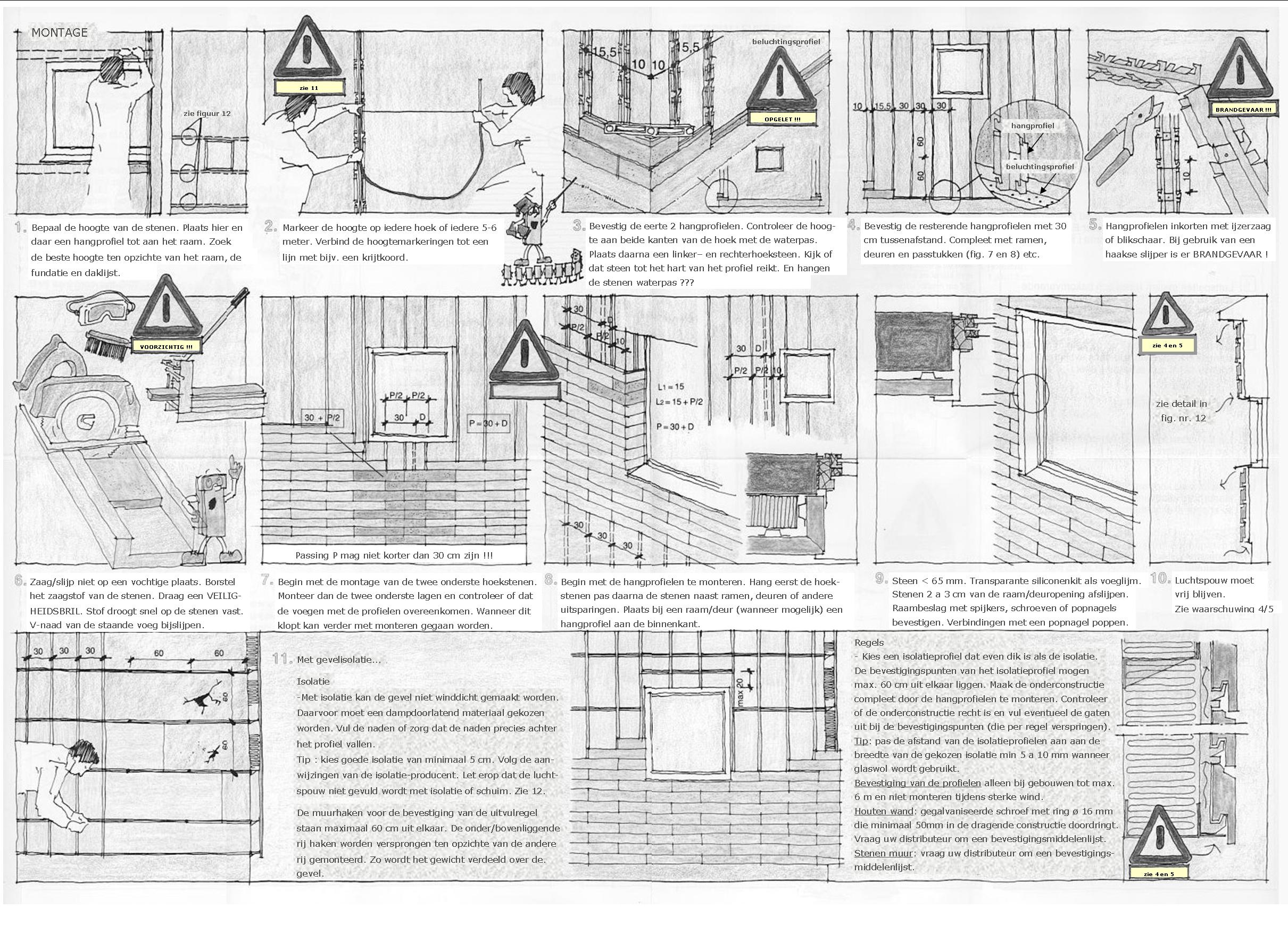Voor dat met installatie begonnen wordt dient eerst een gevelplan gemaakt te worden. Het belangrijkste uitgangspunt hierbij is de onderzijde van ramen.
